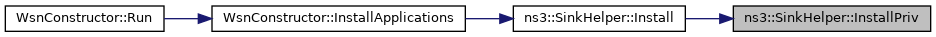 Here is the caller graph for this function:| Ptr< Application > ns3::SinkHelper::InstallPriv | ( | Ptr< Node > | node | ) | const |