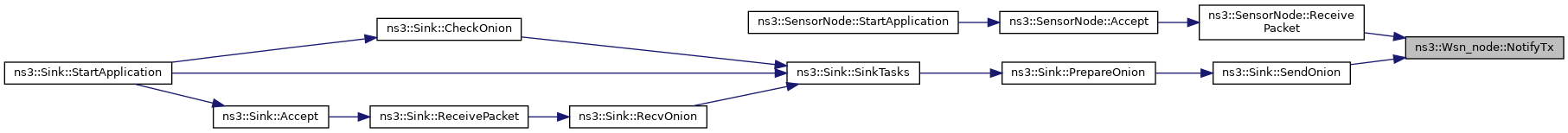 Here is the caller graph for this function:| void ns3::Wsn_node::NotifyTx | ( | Ptr< const Packet > | packet | ) |