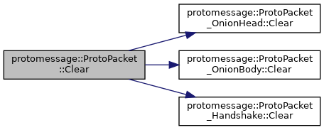 References _has_bits_, protomessage::ProtoPacket_OnionHead::Clear(), protomessage::ProtoPacket_OnionBody::Clear(), protomessage::ProtoPacket_Handshake::Clear(), h_shake_, o_body_, and o_head_.